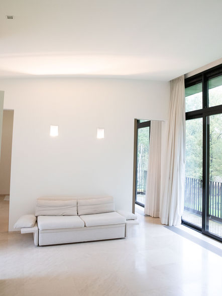 Modern interior house with minimalist decoration, located in the middle of nature with an abundance of daylight. Including bedroom, living room, office space, bathroom and kitchen.
